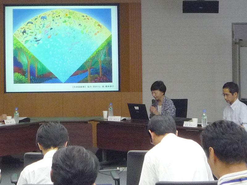 ちょっと子供っぽいパンフレット配らせていただきましたが、20年前に始めました生命誌研究館のパンフレットです。 「生命誌」も「研究館」も私の造語です。 ちょっとなまいきですけれど、20年経ってやっと少しみなさまにわかっていただけるようになったかなと思っています。 始めたころは、それなあに?といわれていましたから…。