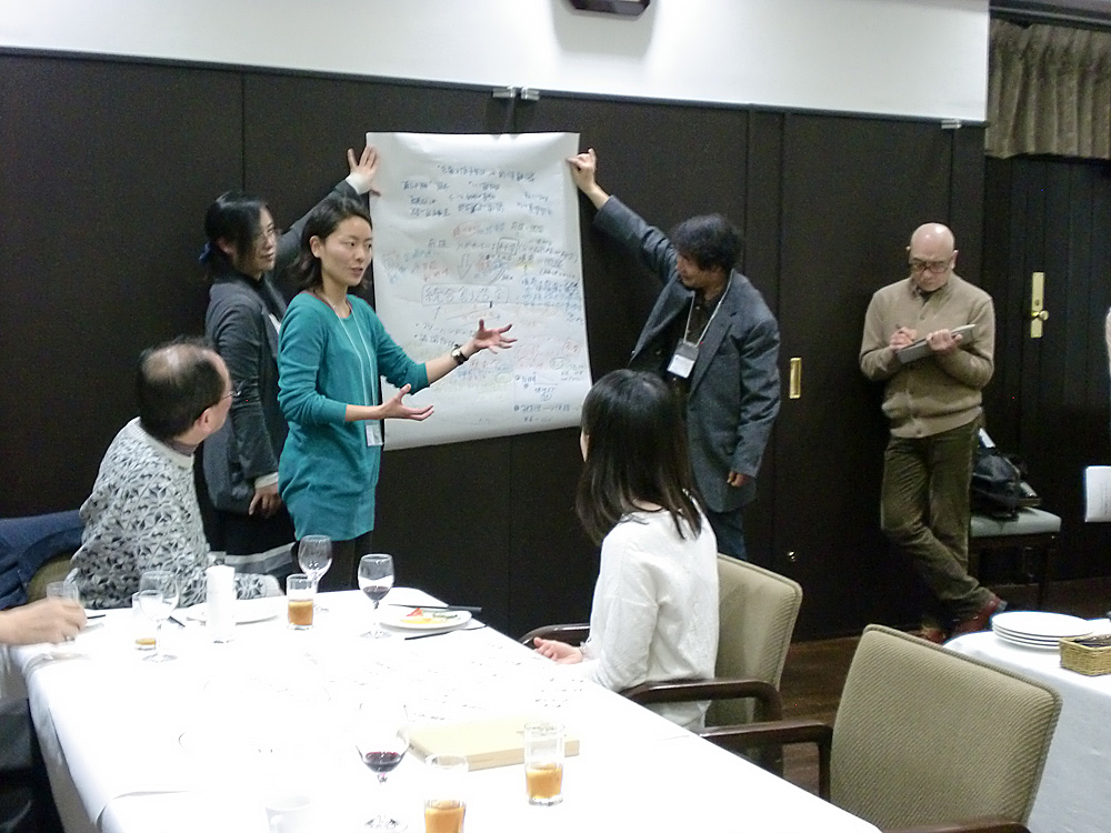 このテーブルでは、教育がテーマになりました。 大学教育につながったんですが、学生自らがお互いに学び合って、もがき合う。 もがき合うからこそ新しいものが生まれる。 教員は、そのもがき方というか勉強のやり方を教えるのが重要なのではないか。 教科書を読むのではなく、そこに書いてない行間を話すことで、学生がもがきやすい状況をつくるというのが重要ではないかということになりました。 高校の先生もいらっしゃったのですが、手先が不器用になっているとか今の高校生についてのお話がありましたが、高校では守らなければいけないルールがある。 実はルールというのは、「二つ解釈」というか、多くの人が同一視するものなんですけど、「倫理」という人間の遺伝子に刻み込まれているもの―生きるために必要な刻み込まれたもの-と、「規範」というか、資本主義的とか科学的とかいう考え方というものがごっちゃ混ぜになっている。 だから、今、日本の教育というのが変なものになっているのではないか。 このルールを、多様性を勘案しながら、しっかり区別して発信していくことが重要ではないかと考えました。